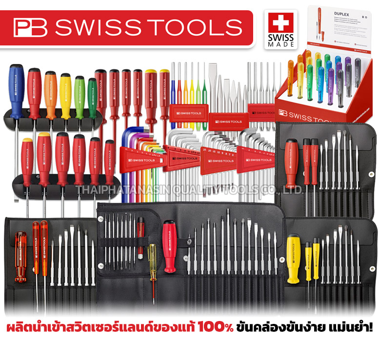 ศูนย์รวมเครื่องมือช่างเกรดพรีเมี่ยม PB SWISS TOOLS แบรนด์อันดับ 1 จากประเทศสวิตเซอร์แลนด์ ส่งตรงจากผู้ผลิต ใหม่ชัวร์ ของแท้ 100% MADE IN SWITZERLAND พร้อมบริการและจัดจำหน่ายโดยตัวแทนจำหน่ายโดยตรง แกร่งทนทาน เซฟตี้ทุกการใช้งาน ทั้ง ไขควง ไขควงแบน ไขควงแฉก ไขควงชุด ไขควงซองหนัง ประแจหกเหลี่ยม ประแจแอล ประแจแอลสีรุ้ง ประแจหกเหลี่ยมสั้น ประแจหกเหลี่ยมยาว ประแจหกเหลี่ยมหัวบอล ประแจหกเหลี่ยมหัวบอลสั้นสีรุ้ง ประแจแอลหัวบอลยาว ประแจหกเหลี่ยมหัวบอลยาวสีรุ้ง เหล็กสกัด เหล็กส่ง รวมรุ่นยอดนิยม!